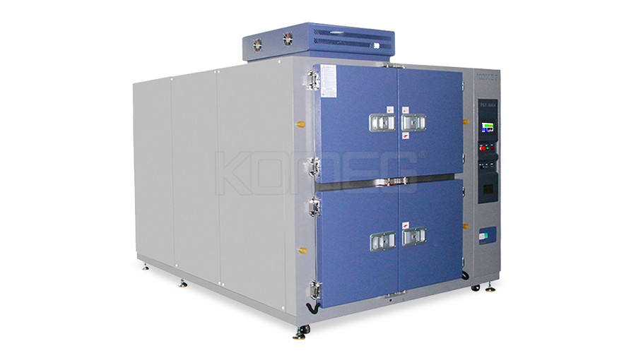 雙開門冷熱沖擊箱用于測試材料結(jié)構(gòu)或復合材料,在瞬間經(jīng)極高溫以及極低溫的連續(xù)環(huán)境下所能忍受的程度得以在最短時間內(nèi)檢測試樣因熱脹冷縮所引起的化學變化或物理傷害,從而考核產(chǎn)品的環(huán)境適應性能與整體結(jié)構(gòu)性能是否合格。產(chǎn)品特點: